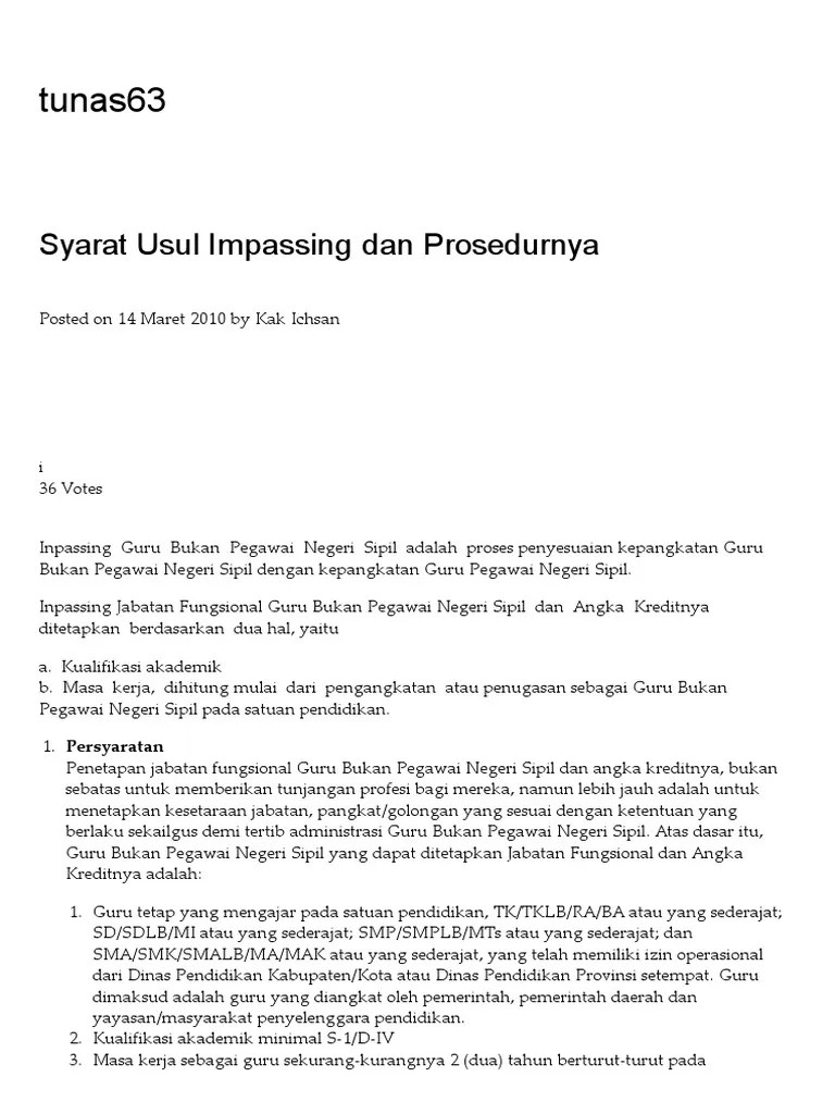 Artinya guru non pns yang sudah sertfikasi akan disetarakan tunjangannya setara. Lebih lanjut, terkait masa kerja guru inpassing yang sudah muncul di sk inpassing, dihitung dari masa kerjanya. Kemenang sudah membahas mengenai payung hukum . Sk inpassing guru bukan pns pereode januari 2011 telah terbit. 3 capaian proses inpassing guru bukan pns per november 2009.